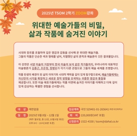 TSOM 2025 2학기 줌 강좌 - 위대한 예술가들의 비밀, 삶과 작품에 숨겨진 이야기