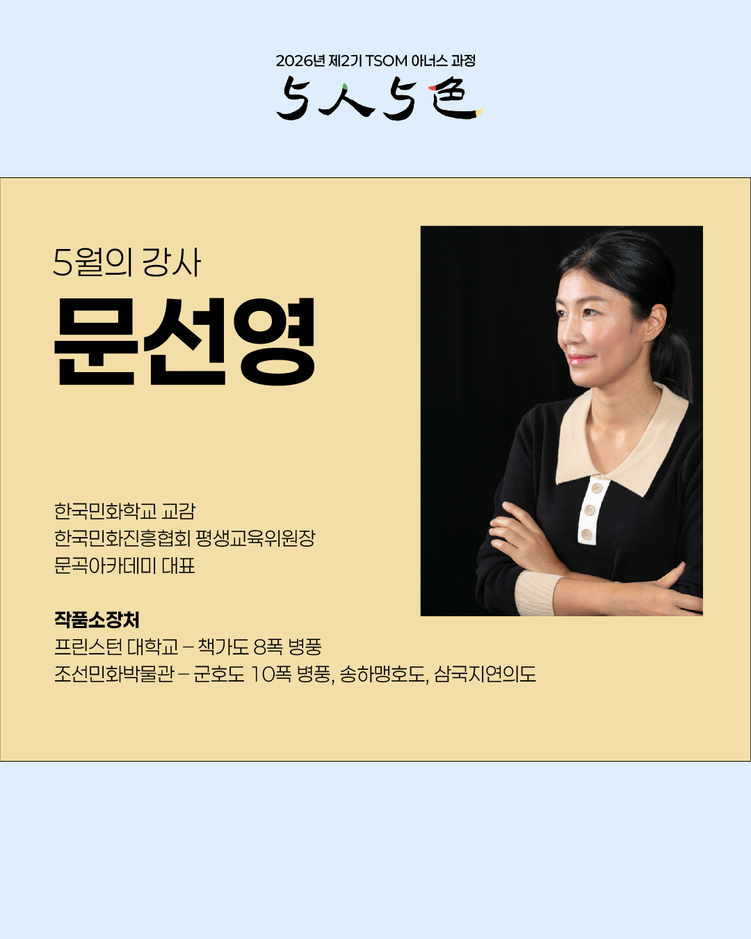 강의 5인 5색 - 5월의 강사 문선영 책 정보 기간 2026.05.05 ~ 2026.06.30 장소 강남구 삼성로 96길 6 LG트윈텔 1차 1410호 관람료 무료 주최/후원 연락처 관련사이트